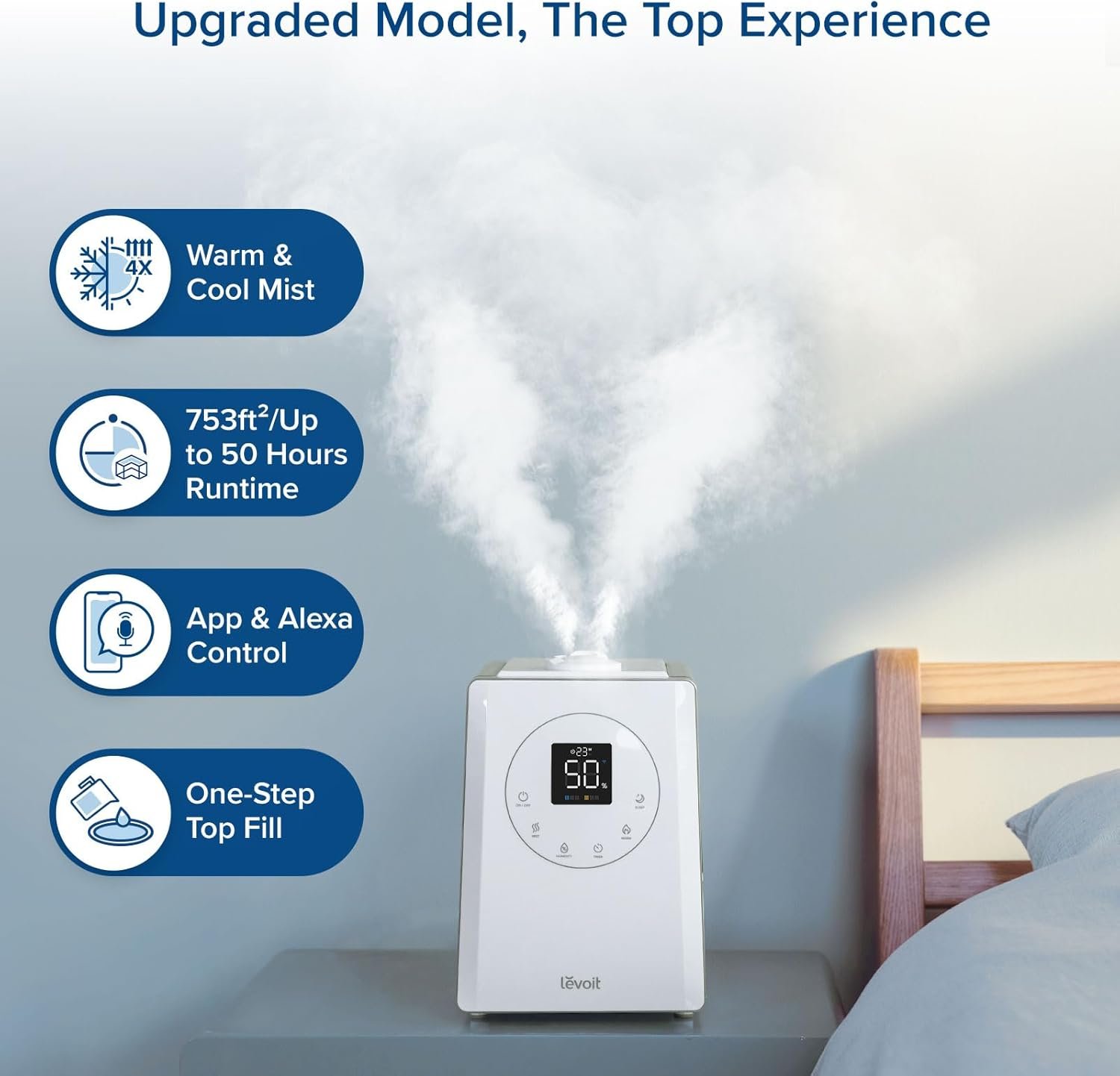 The flexible top-fill design makes routine maintenance hassle-free. Performance is reliable whether operated manually, through its dedicated app, or via smart home assistants like Alexa. According to LEVOIT, this device is built for consistent humidification and lasting comfort.